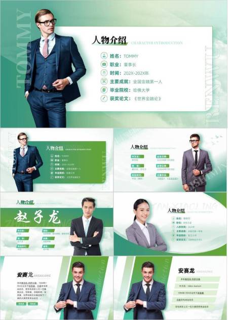 绿境新生商务精英简约介绍PPT模板