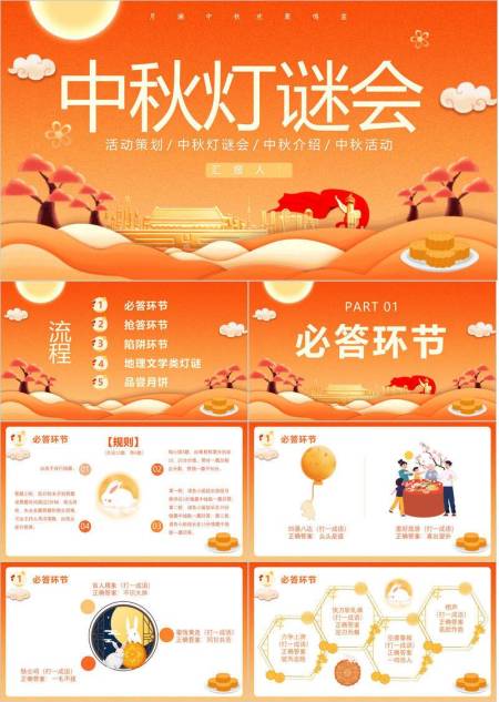 中秋节灯谜策划创意几何PPT模板