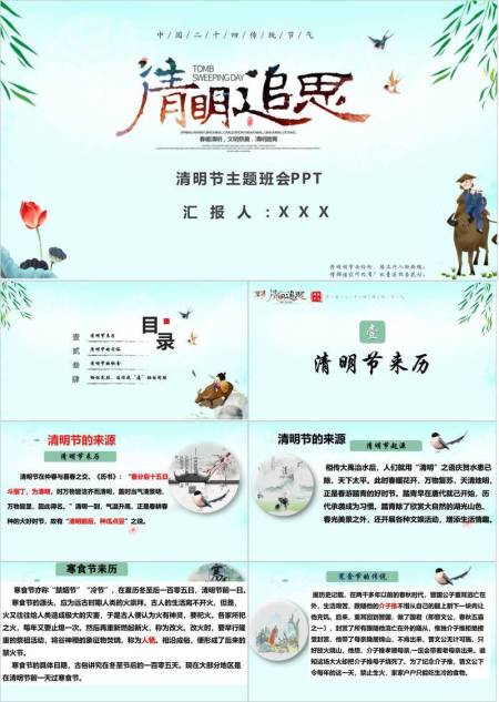 国风艺术清明节追思主题班会PPT模板