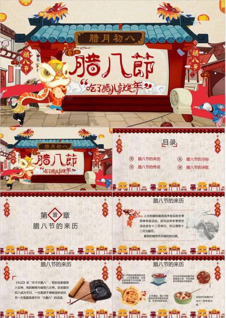 腊八节民俗动画年俗PPT模板