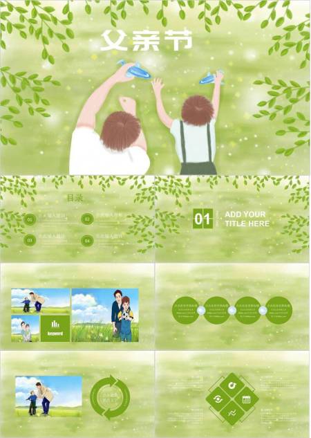 父亲节放飞纸飞机亲子游戏PPT模板