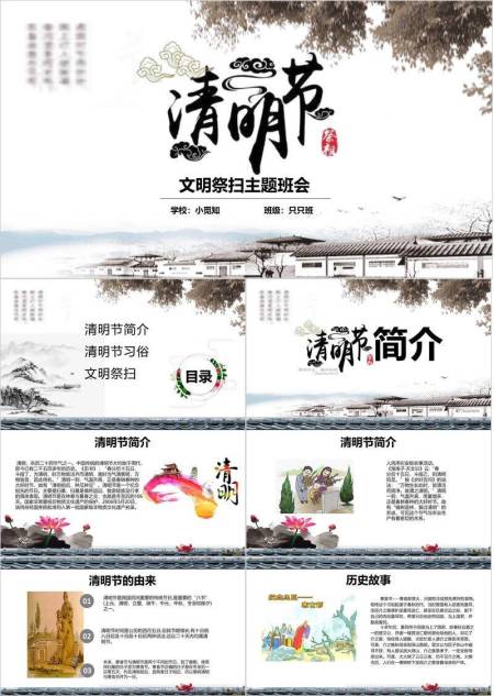 传统复古清明节文明祭扫班会PPT模板