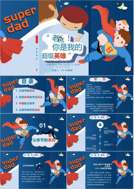 父亲节超级英雄儿童演讲PPT模板