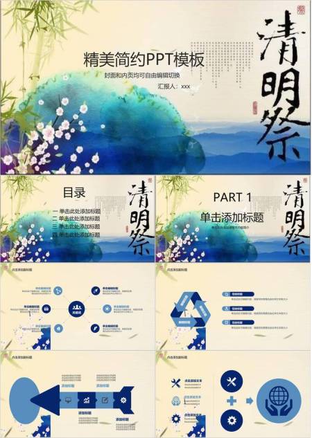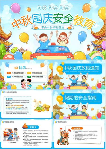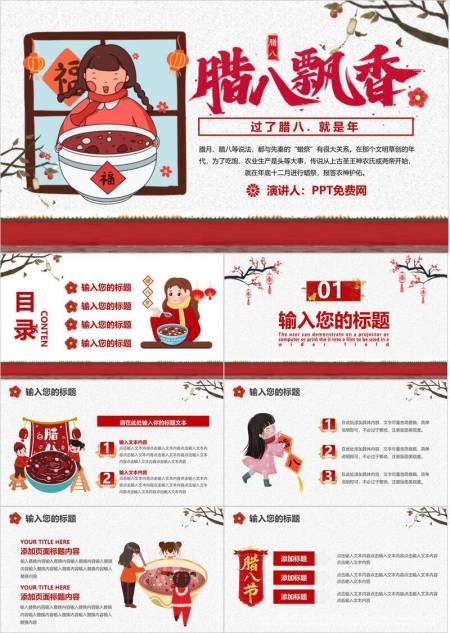 鼠年女孩彩带云朵迎新年主题PPT模板