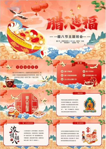 金色圆环牡丹云纹高级感游戏集锦PPT模板