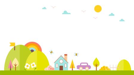 绿色卡通风格田园小屋PPT背景