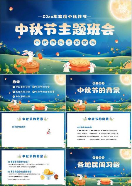 中秋节主题班会卡通PPT模板