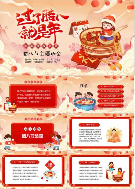 腊八节奇幻插画班会PPT模板
