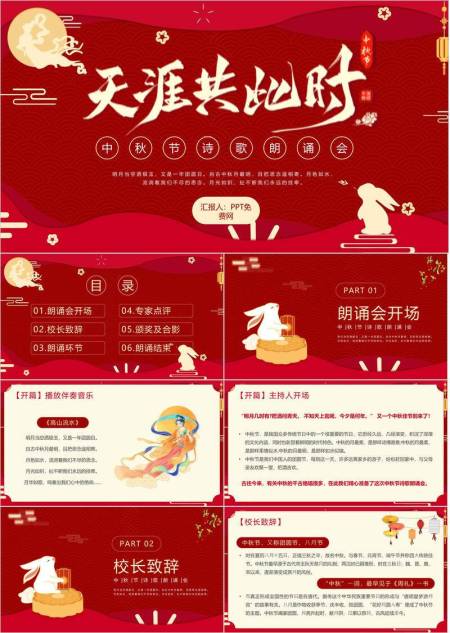 中秋节诗歌朗诵会中国风PPT模板