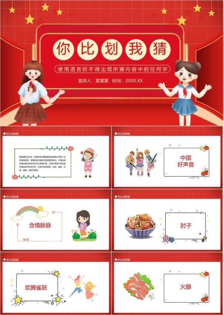 舞台双人比划猜互动年会游戏PPT模板