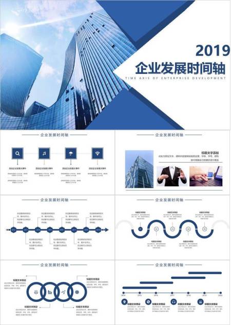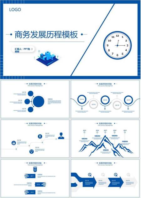 3D城市时钟模型商务发展历程时间轴PPT模板