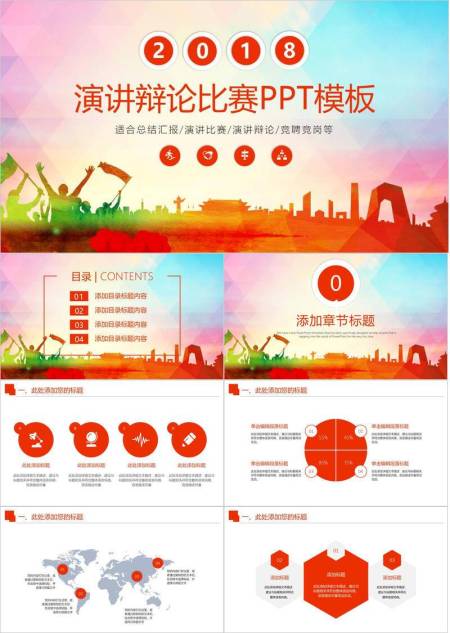 彩虹城市剪影多用途演讲比赛PPT模板