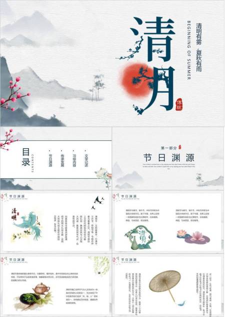 极简水墨清明节节气文化PPT模板