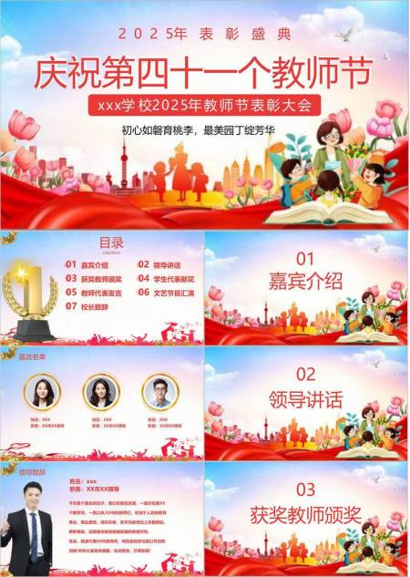 教师节桃李芬芳国潮表彰PPT模板