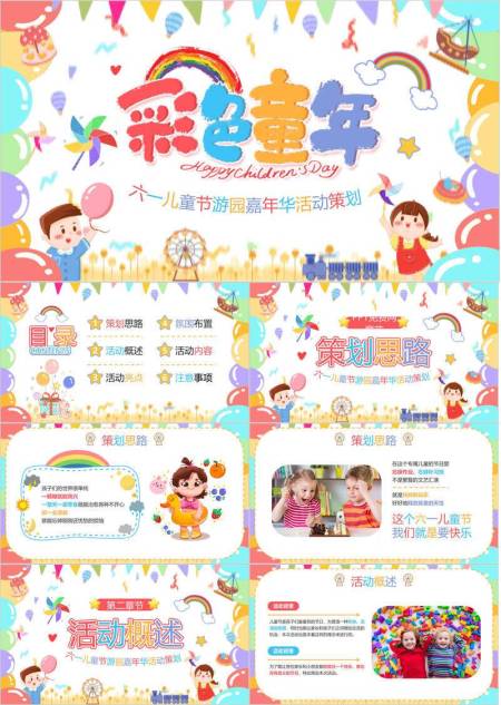 六一儿童节手绘风游园会策划PPT模板