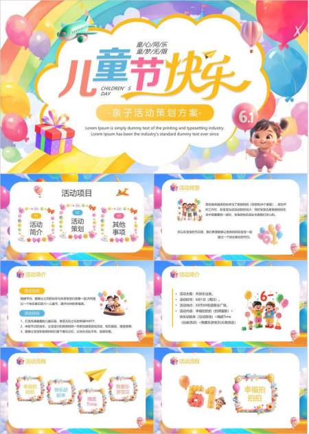 六一儿童节温馨亲子活动策划PPT模板
