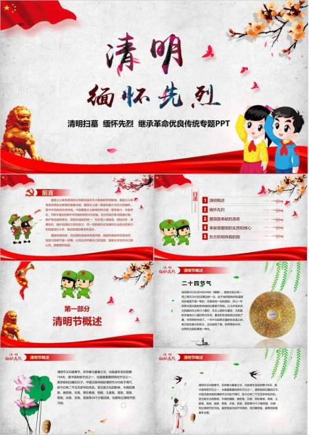 卡通爱国风小学生缅怀先烈PPT模板