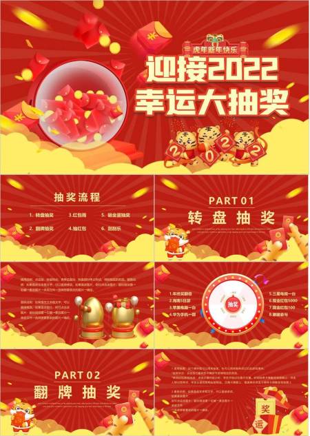 红包雨动态小老虎2022虎年抽奖PPT模板