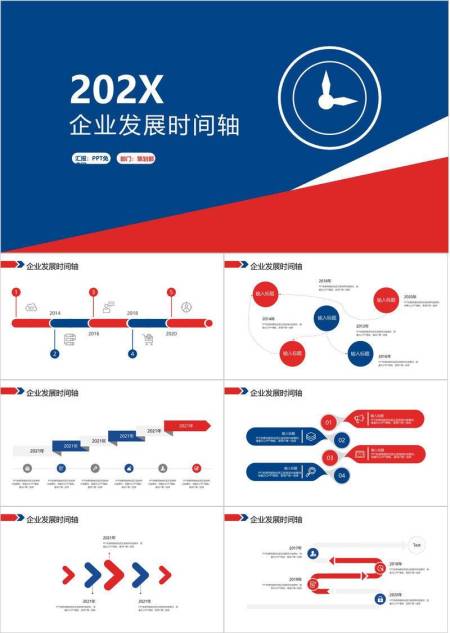 蓝红渐变分割抽象城市企业规划时间轴PPT模板