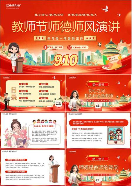 教师节国风立德师德演讲PPT模板