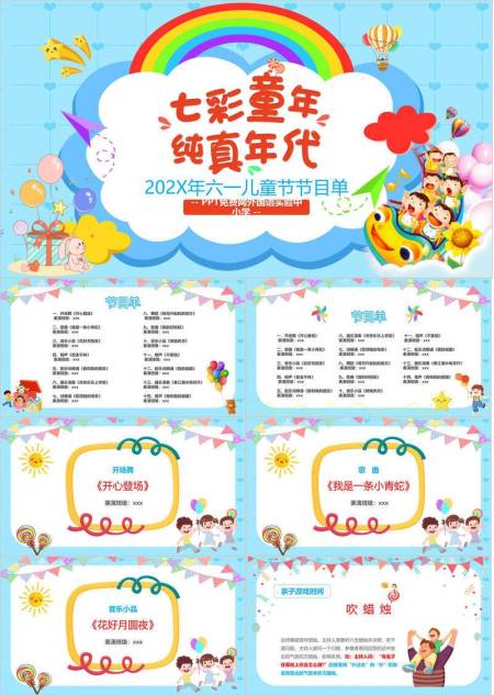 六一儿童节欢乐彩虹节目单PPT模板