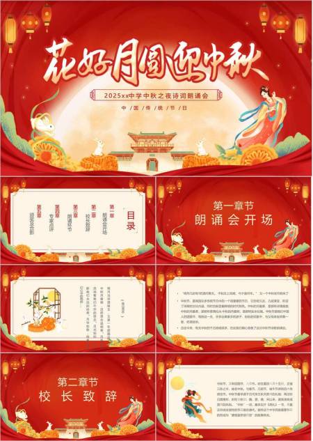 JI-000113红色喜庆剪纸风狗年PPT模板
