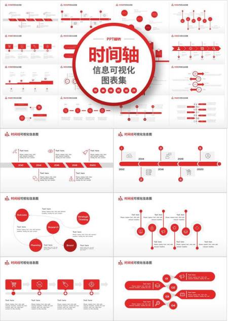 红白配色时间轴信息可视化图表合集PPT模板