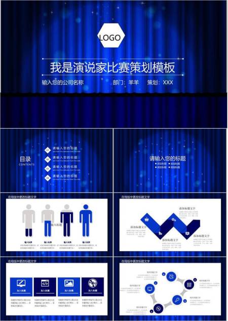 深蓝星光六边形演说家比赛策划PPT模板