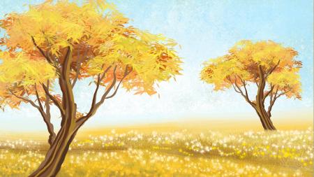 黄色小清新秋季树林PPT背景