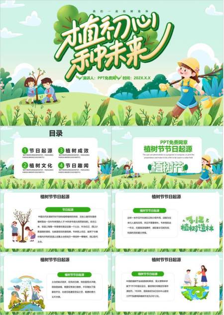 植树节主题演讲卡通PPT模板