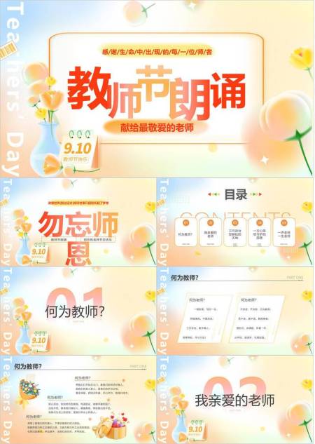 教师节简约渐变朗诵PPT模板