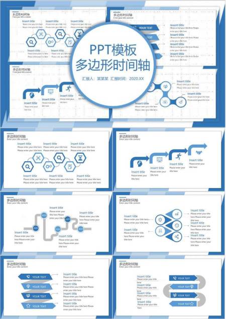 蓝色多边形图标时间轴PPT模板