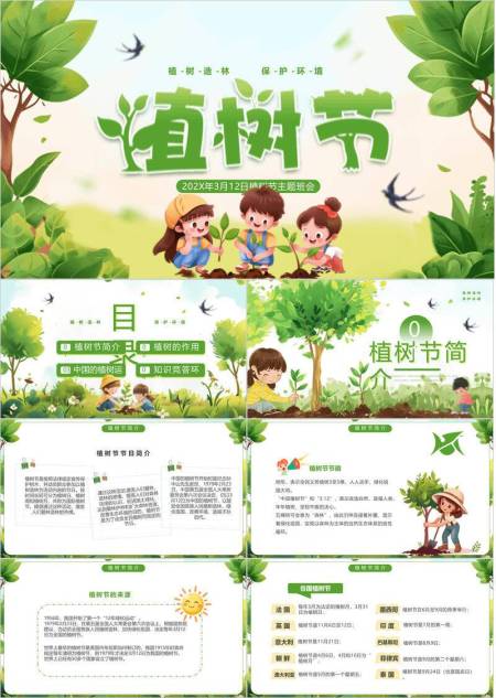 植树节英文介绍简约PPT模板