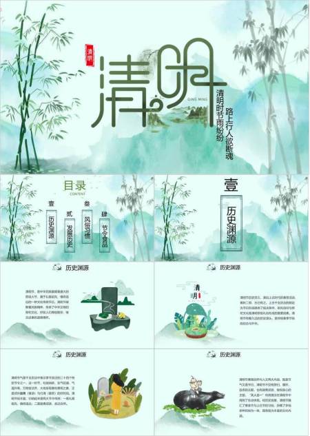 JI-000135简约古典大气清明节PPT模板