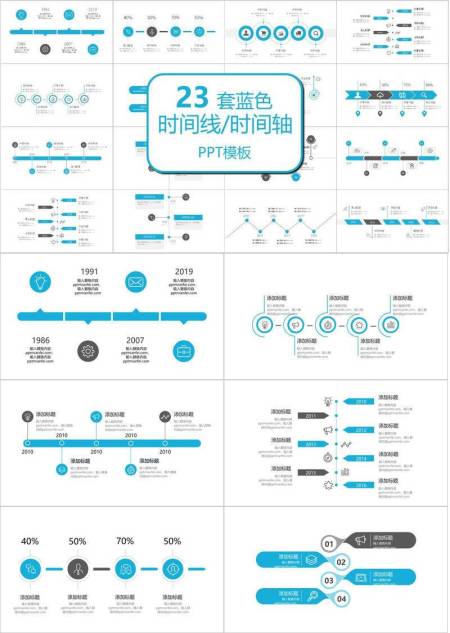 23套蓝色时间轴PPT模板合集