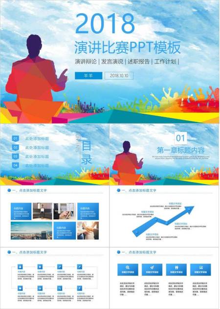 多彩几何年份演讲辩论通用PPT模板