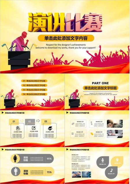 金立字讲台人群红黄激励演讲PPT模板