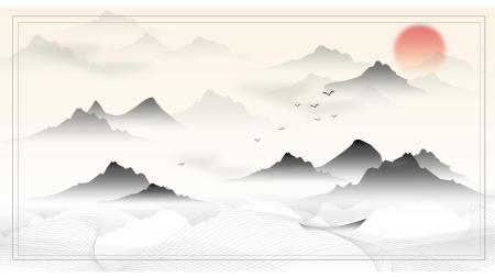 白色中国风水墨山水PPT背景图片