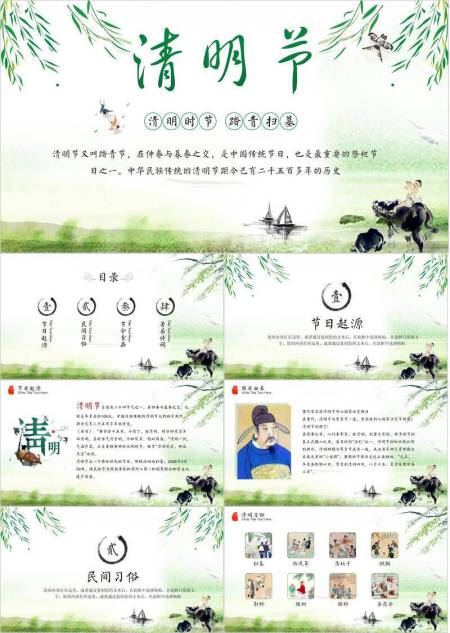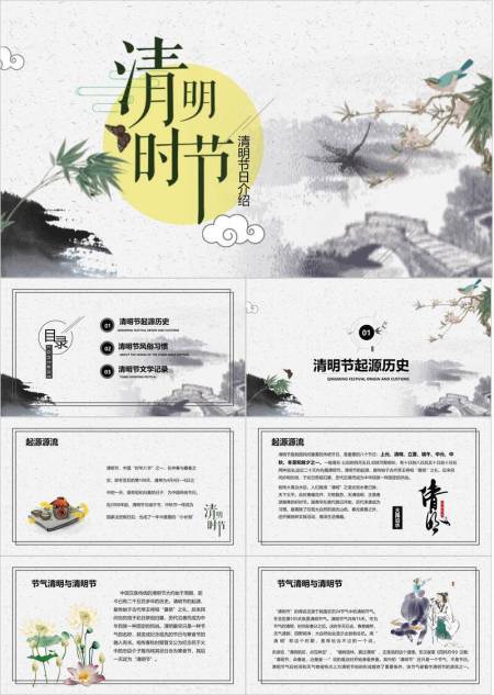 水墨国风清明节节日介绍PPT模板