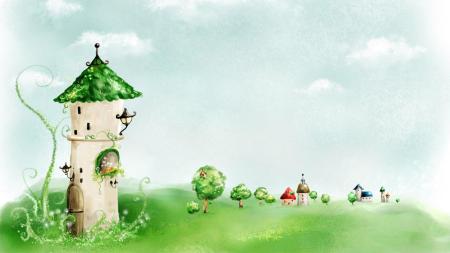绿色手绘水彩童话PPT背景图片