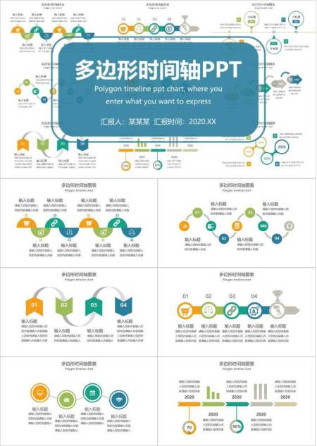 彩色多边形网络状时间轴PPT模板
