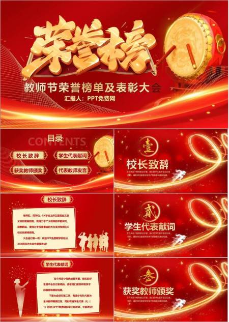 教师节动感国风荣誉榜PPT模板