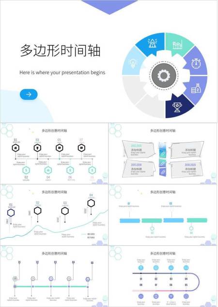 齿轮六边形图标科技感多边形时间轴PPT模板