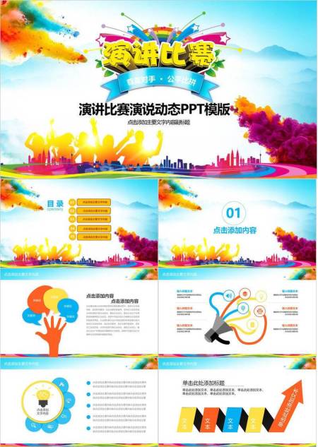 多彩喷溅城市青少年演讲比赛PPT模板