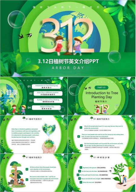植树节通用卡通PPT模板