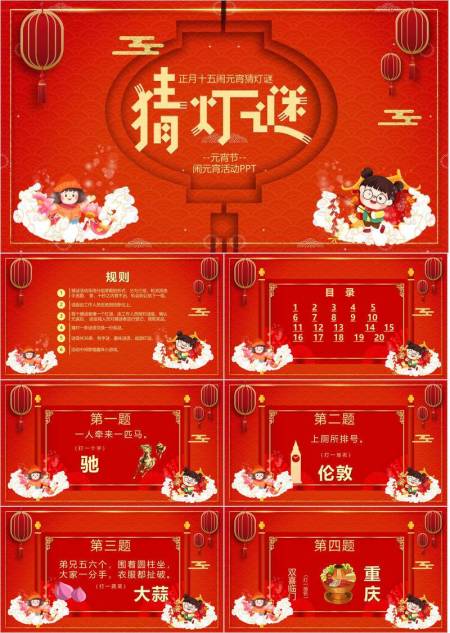 儿童放烟花云朵底座灯笼元宵猜灯谜PPT模板