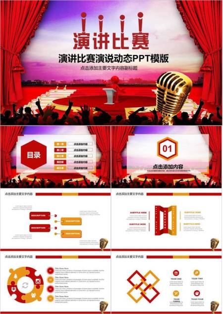 红幕小人观众现场感演讲比赛PPT模板
