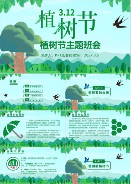 植树节主题班会扁平PPT模板