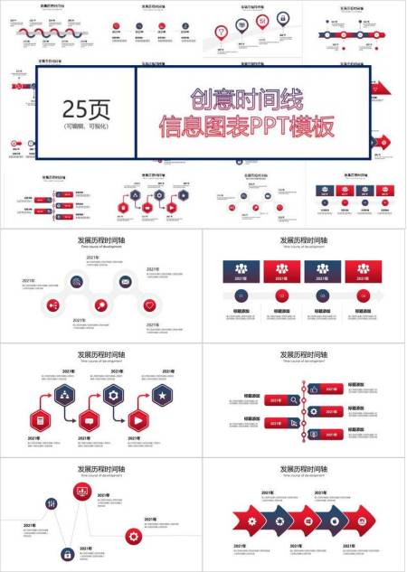 红蓝对比创意时间线信息图表PPT模板