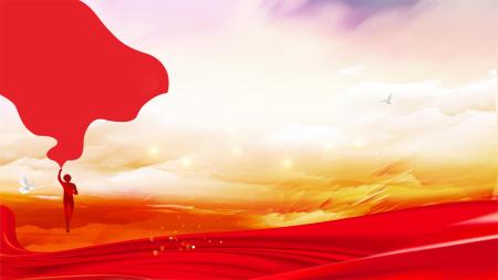 红色中国风红旗晨曦PPT背景